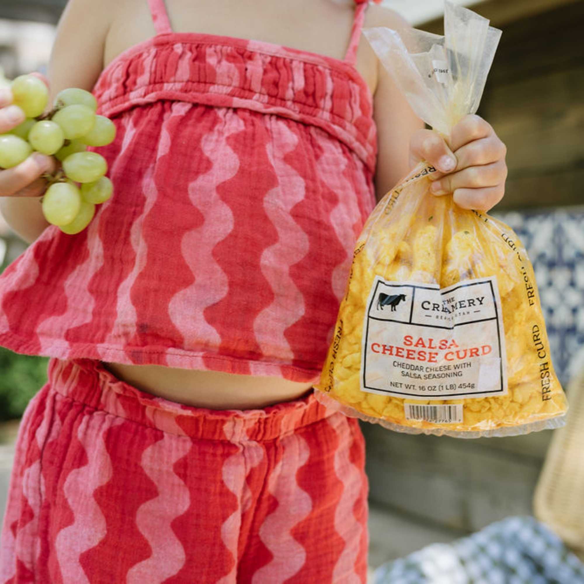 Made fresh daily with a mild-salsa seasoning, our salsa cheddar cheese curds are the perfect snack. Best served at room temperature, enjoy these as an on-the-go snack right out of the bag or as delectable bites on a cheeseboard.