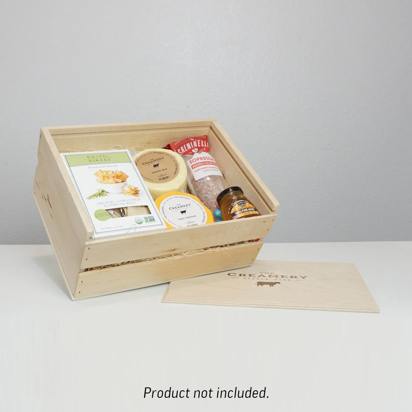 Add a wood gift crate to your gift box order and we will package your selected gift box inside for a memorable presentation.